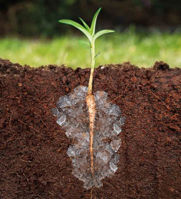 Actúa como un reservorio de agua que le permitirá a cada planta crecer y dar frutos con la menor cantidad de riegos posibles.
